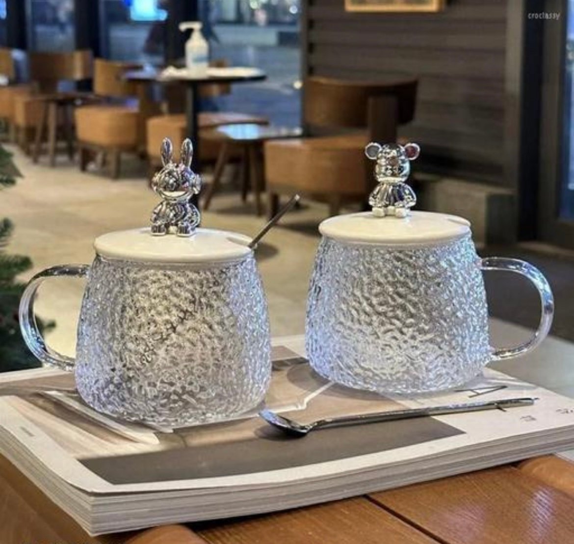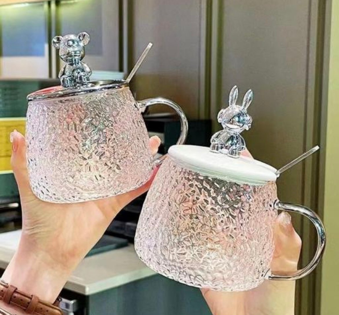 Cute Bear Shaped Glass Mug with Lid and Spoon 300ml